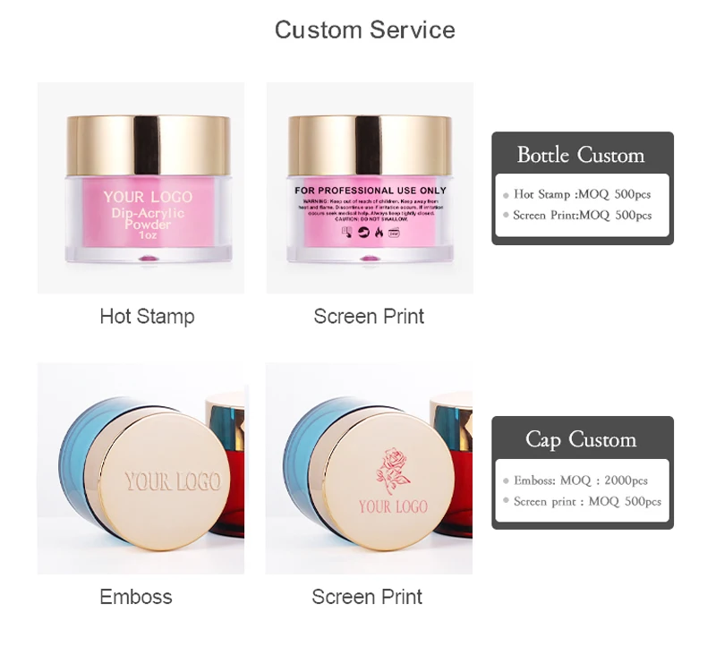 Usage:: face cream, skin care container, dipping powder jar ect..
