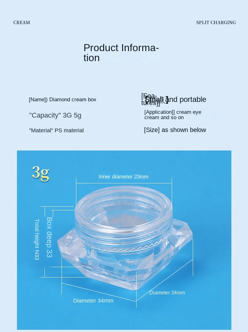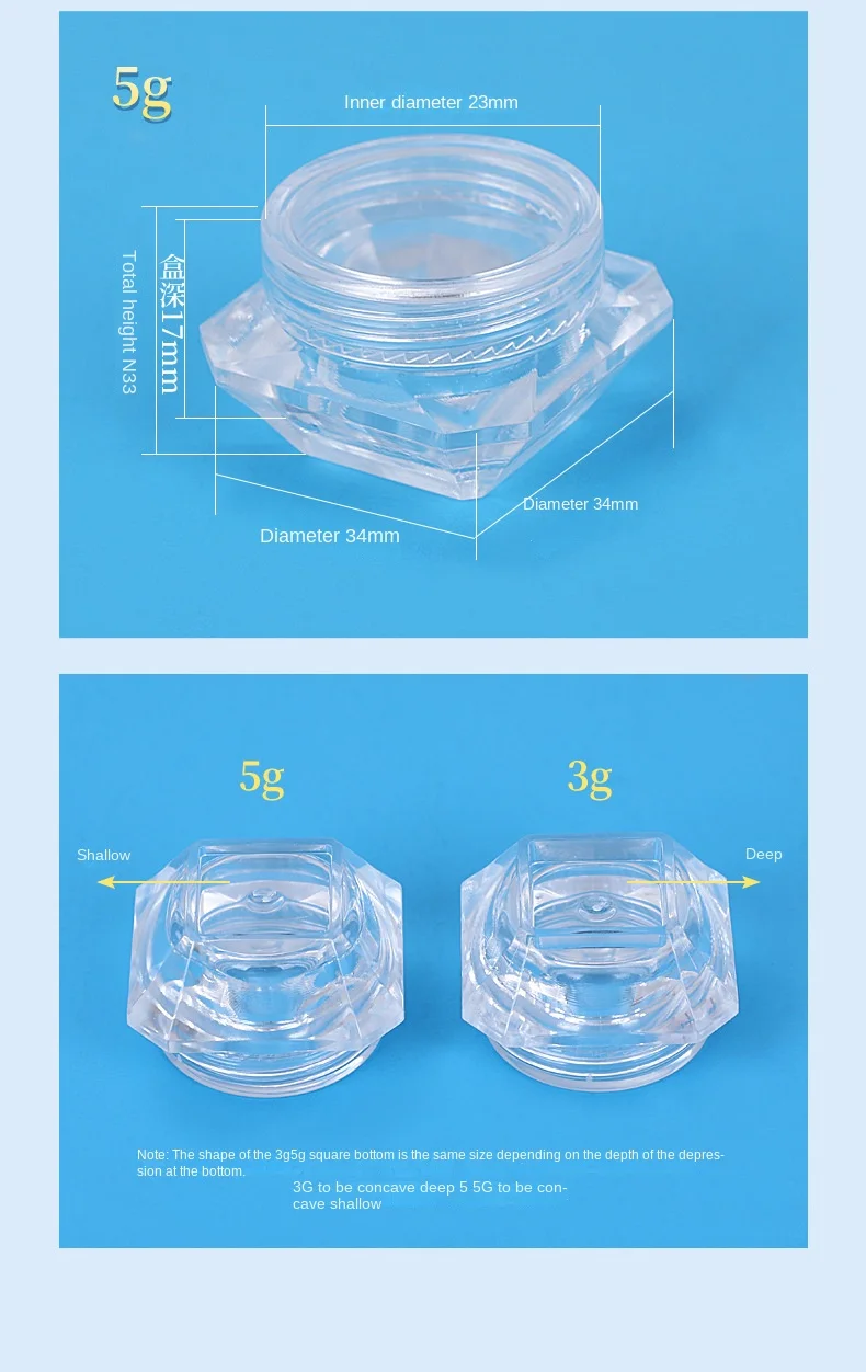 3g 5g Clear PS Plastic Cosmetic Jar Luxury Container with Screw Top Lids for Skin Care Samples
