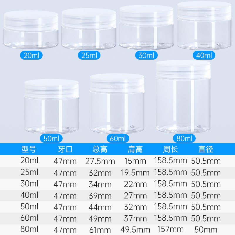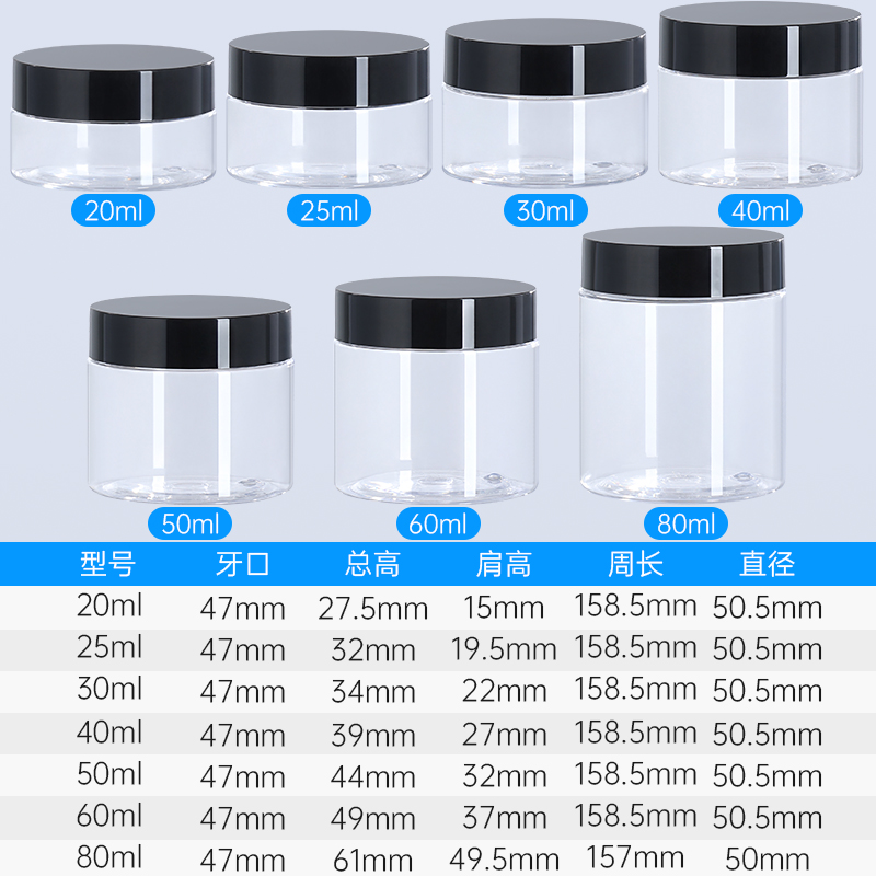Clear Plastic Jars with Lid for Cosmetics Black Screw Cap Small Cosmetic Jar Packaging Containers Empty Plastic Jar Private logo