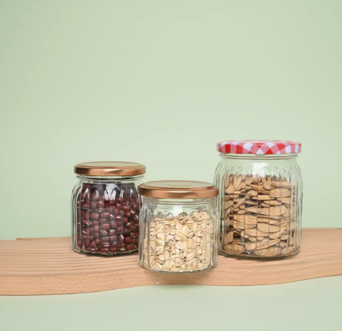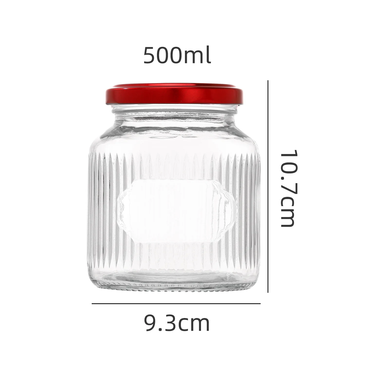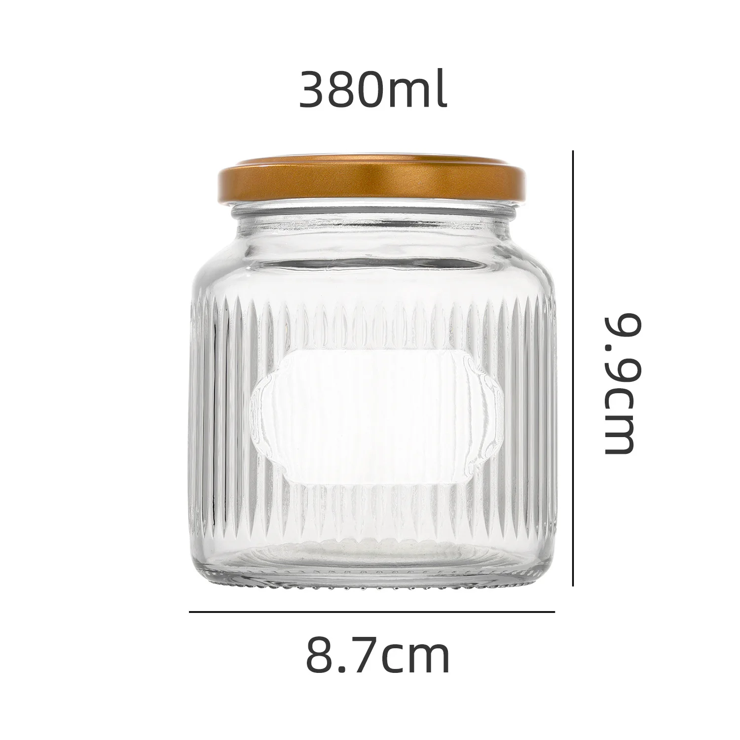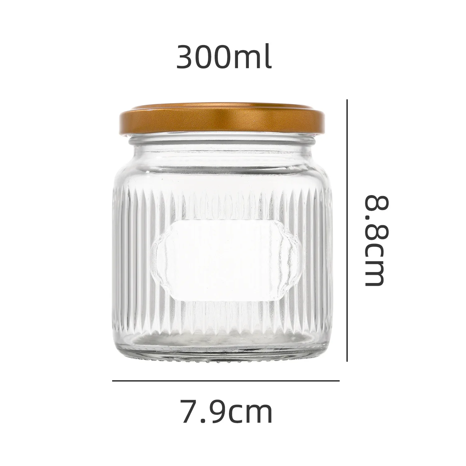 High Quality Vertical Striped Glass Jar with sealed Metal Screw Cap for Storing Jam Honey Oats and Dry Goods in the Kitchen