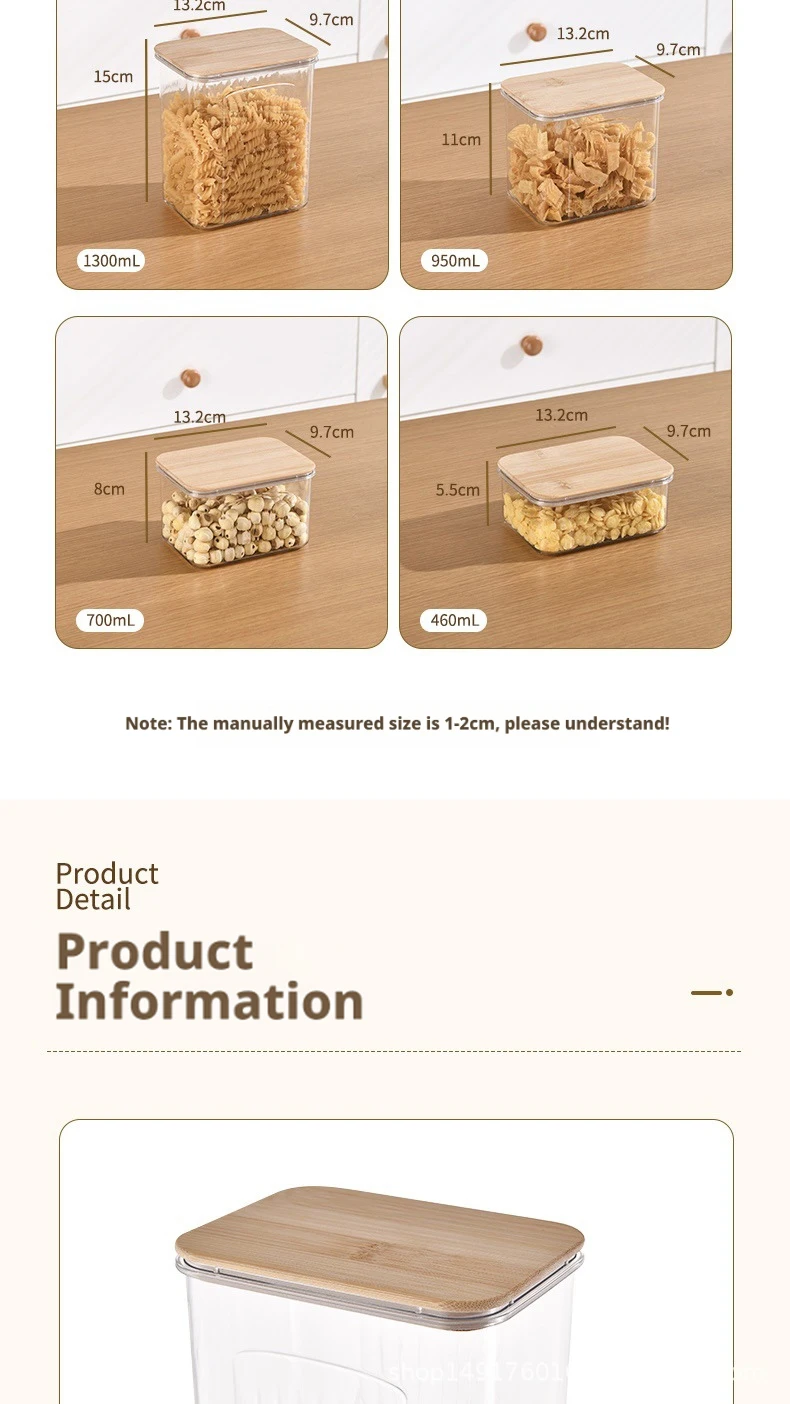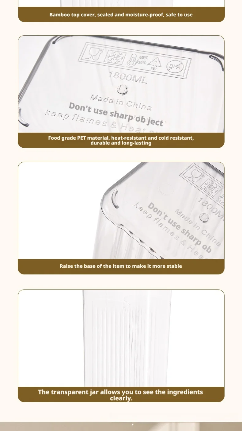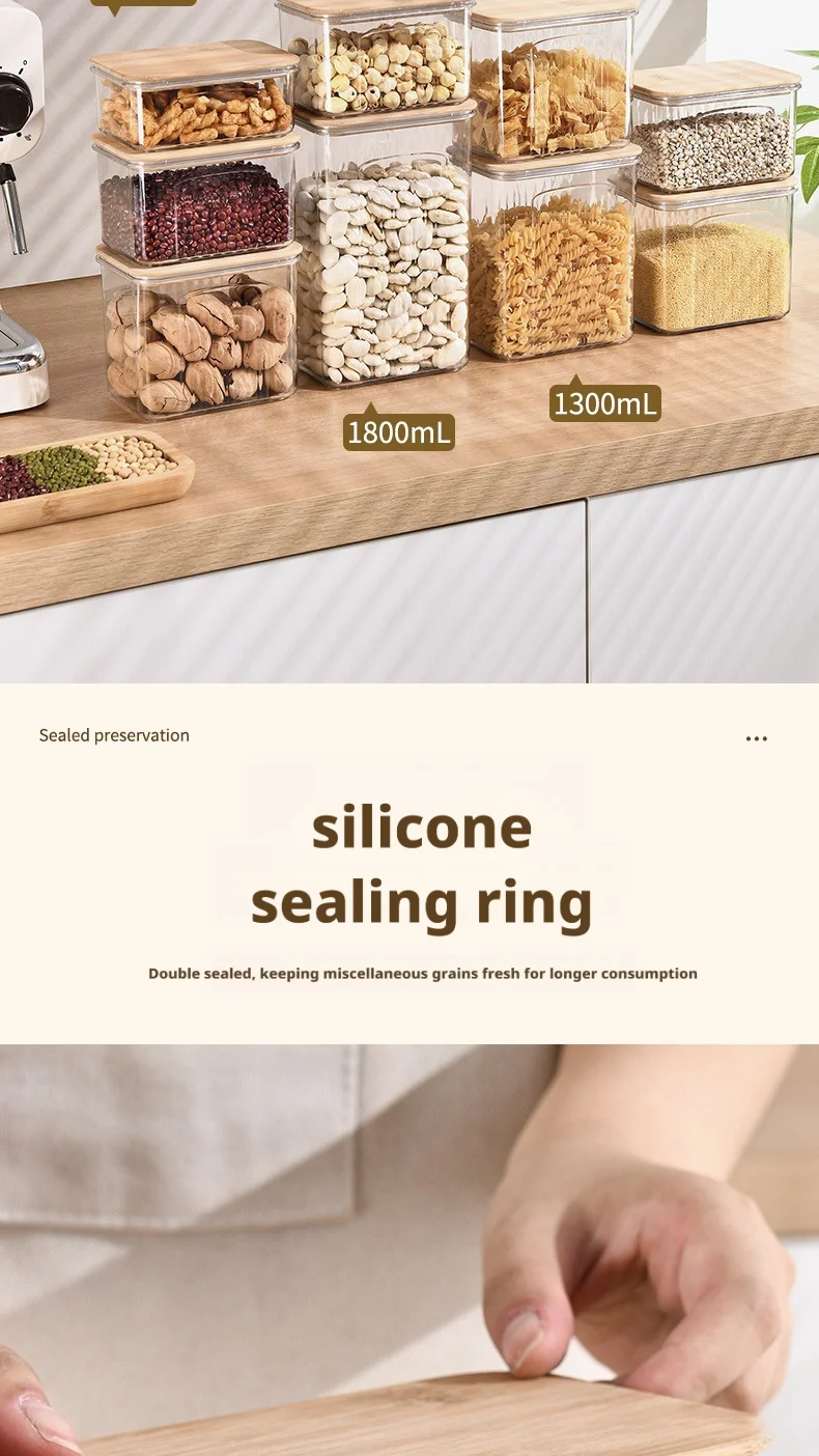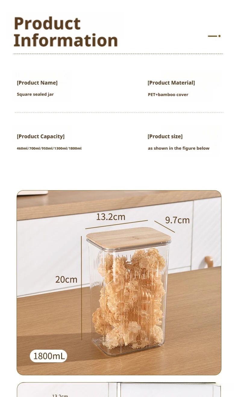 1800ML: Transparent Pet + Bamboo Lid 13.2*9.7*20cm 363g