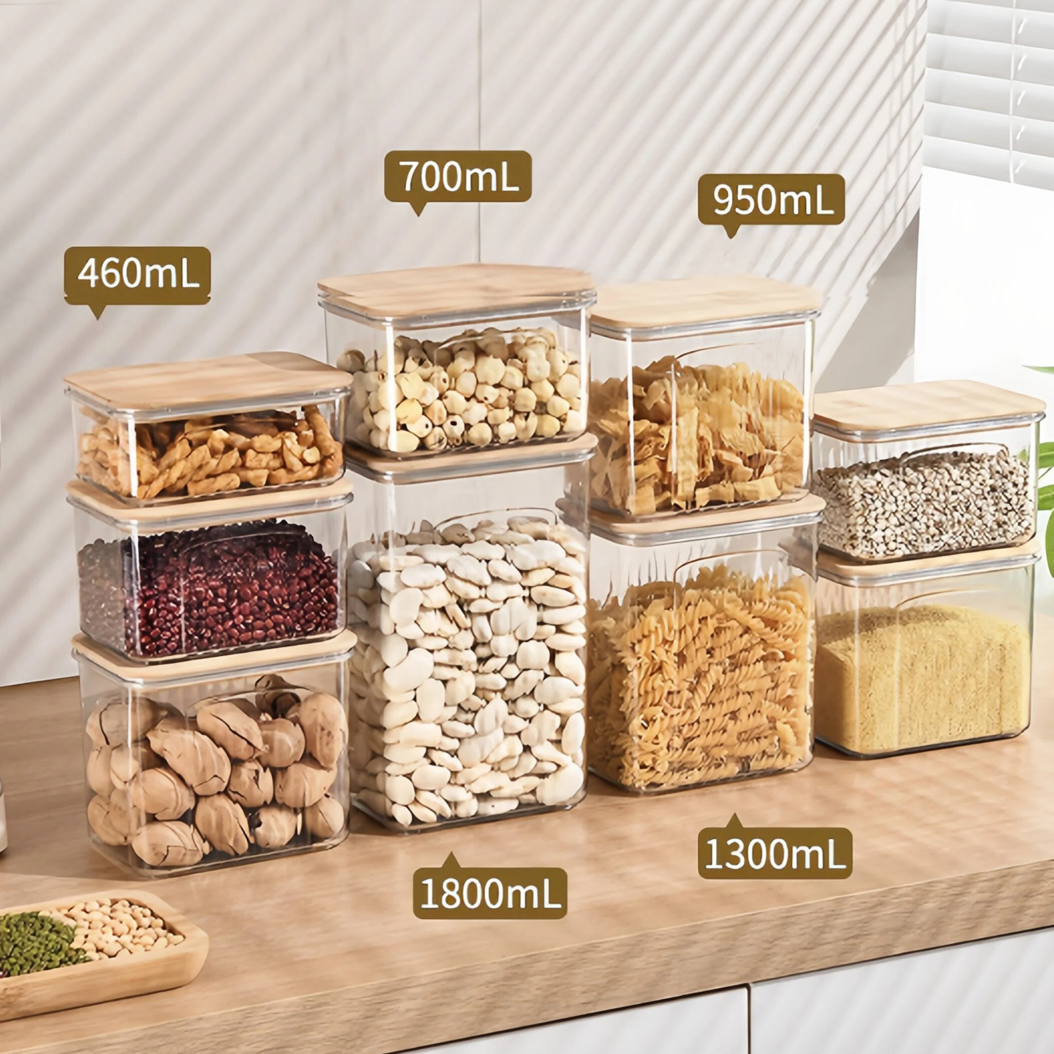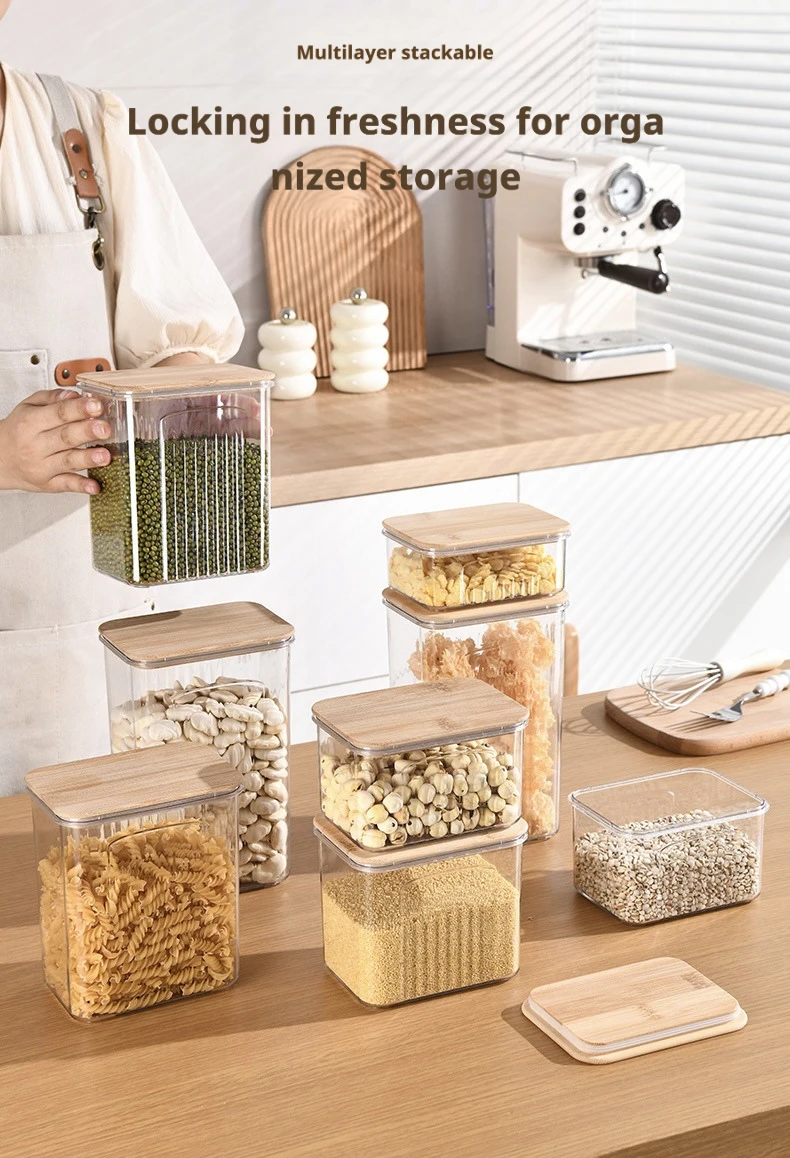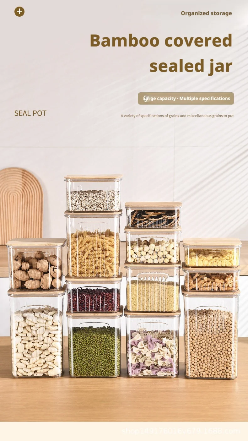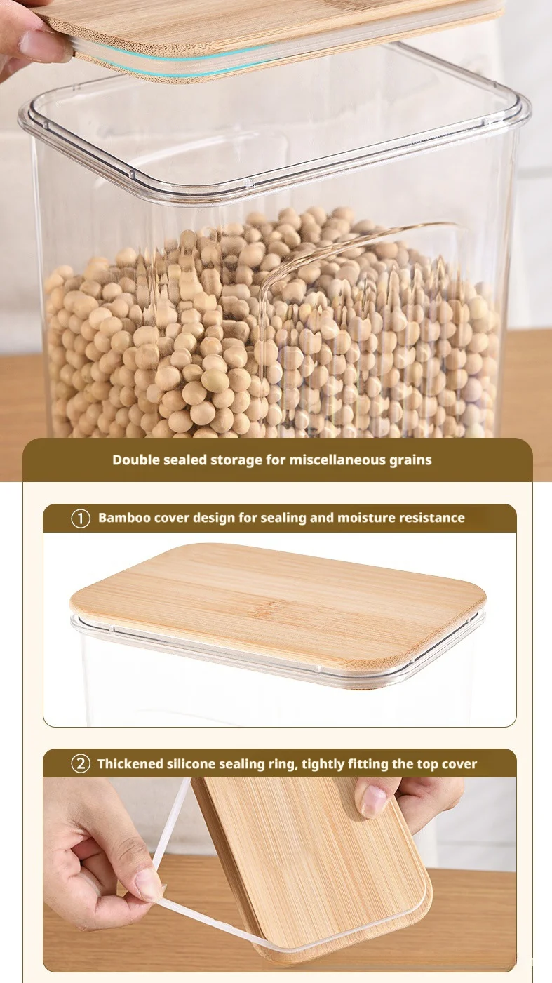 1800ML: Transparent Pet + Bamboo Lid 13.2*9.7*20cm 363g