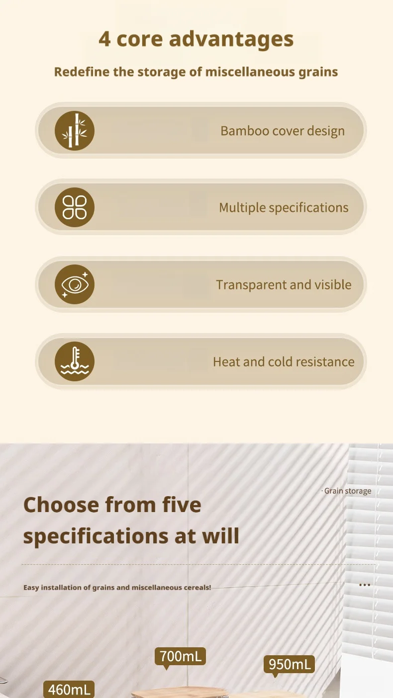 950ML: Transparent Pet + Bamboo Lid 13.2*9.7*11cm 249g